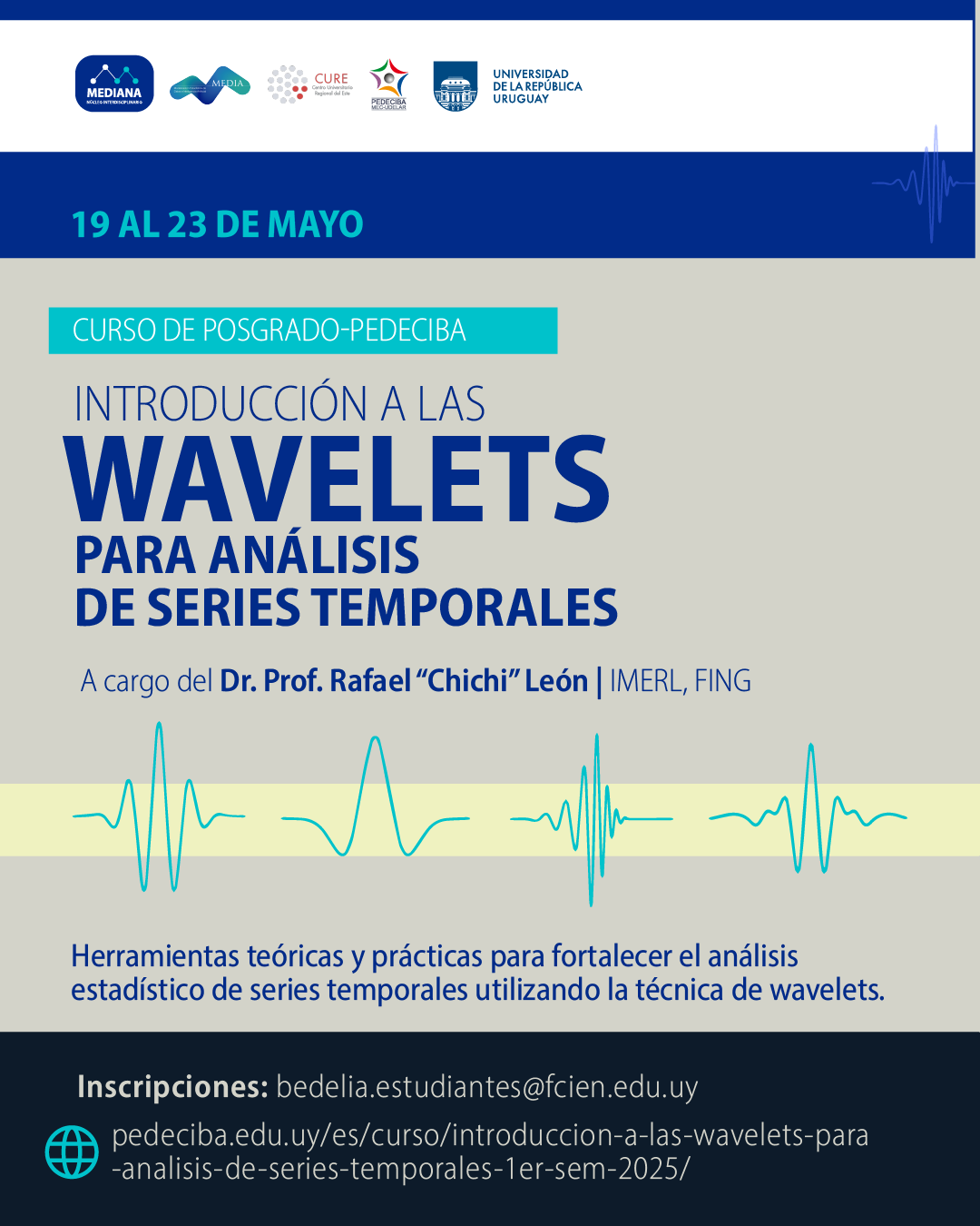 El curso "Introducción a las wavelets para análisis de series temporales" tratará temas que aporten herramientas teóricas y prácticas para fortalecer el análisis estadístico de series temporales utilizando la técnica de wavelets.